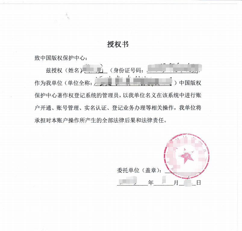 授权书模板需填写好,盖章
